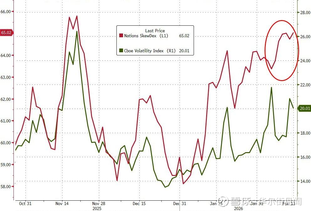 本周VIX一度突破了被广泛关注的20关口,尽管读数未显示恐慌迹象,但看跌期权的偏斜度仍处于历史高位,这表明市场正在有条不紊地为下行保护买单。