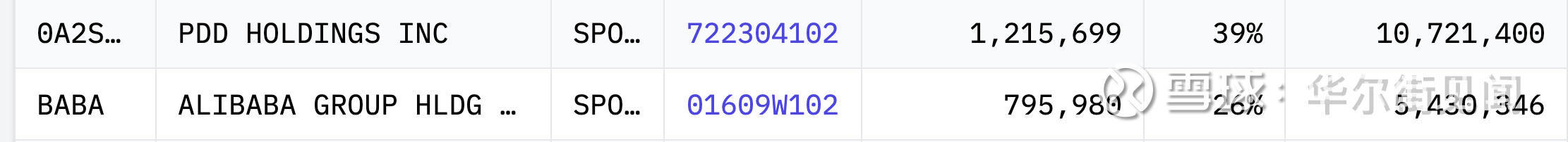 与此同时,阿里巴巴也获得明显加仓。持股由328.9万股增至543万股,持仓市值由5.88亿美元升至7.96亿美元,占组合比例升至26%,继续位居第二大重仓股。