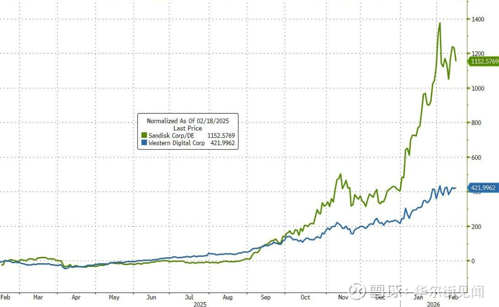 自去年2月24日分拆正式完成以来近一年时间里,两家公司股价走势出现显著分化。尽管西部数据股价大幅上涨,但闪迪则经历了更为强劲的涨势。