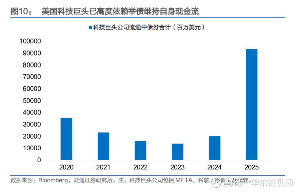 财通证券指出,若特朗普不大幅降息,高利率将抑制企业投资,同时威胁高度依赖举债的AI资本开支。Meta、Alphabet、亚马逊和甲骨文的AI基建投资已高度依赖债务融资。2025年第二、三季度,AI相关投资对美国GDP增速贡献分别达0.9%和0.8%,美国经济对这一支出的依赖度已显著上升。