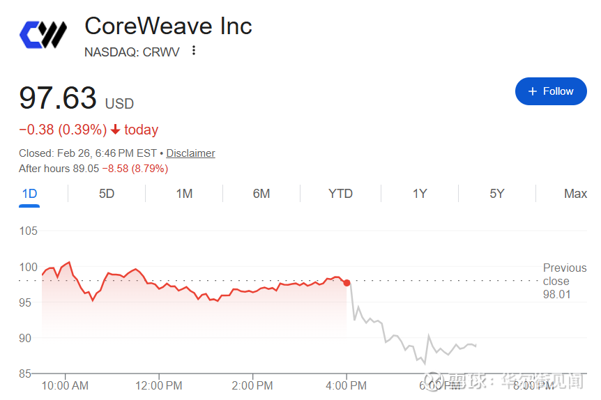 2月26日美股盘后,CoreWeave第四季度调整后每股亏损56美分,高于市场普遍预期的50美分。净亏损从上年同期的5100万美元大幅扩大至4.52亿美元。