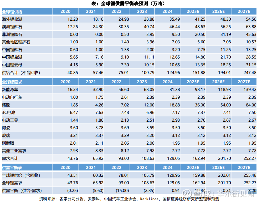 值得注意的是,国信证券的供需表显示,2027年全球锂供给预计快速增至247.5万吨LCE,届时将产生约3.2万吨的净过剩——换句话说,20万以上的价格可能是窗口期,而非新的平衡点。