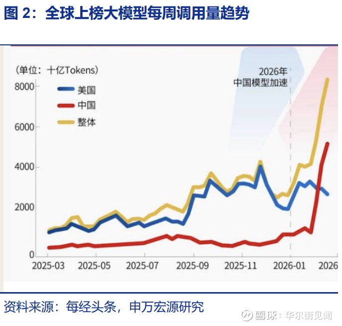 推理需求全面爆发,Token消耗创历史新高申万宏源研究认为,需求持续扩张的背后是两大结构性驱动力:一是大模型货币化加速,Claude等模型开始向应用端切入,发布多款行业插件;二是Agent落地提速,openclaw、千问Agent等产品标志着Agent正进入真实的工作与生产场景,而每一次模型调用和Agent任务执行,背后均需大量推理算力支撑。