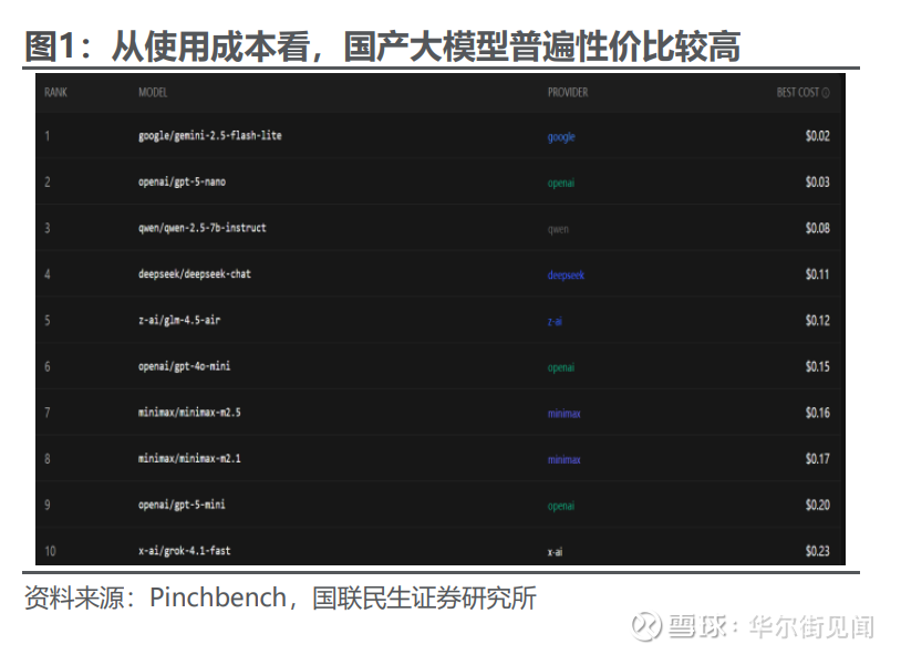 从成本视角看,中国大模型生态形成了独特的“低价API”壁垒。研报指出:“国产模型的API调用价格,大约是海外同类产品的1/6。”这种优势源于国内算力背后更便宜的电力、更灵活的硬件配置以及模型厂商间的激烈竞争。