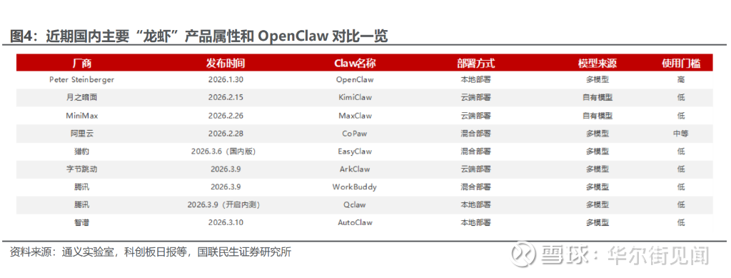 在部署层面,国联民生证券明确指出:“从部署方式来看,本轮各主体参与‘龙虾潮’的方式呈现‘百花齐放’的态势。”有别于海外OpenClaw主打本地部署的初衷,“国内大厂的‘龙虾产品’在部署方式上存在本地部署、云端部署和混合部署三种特征,可选择性更强。”该机构认为,这主要是因为“本轮国内‘龙虾产品’更为关注部署的便捷性和安全性。”