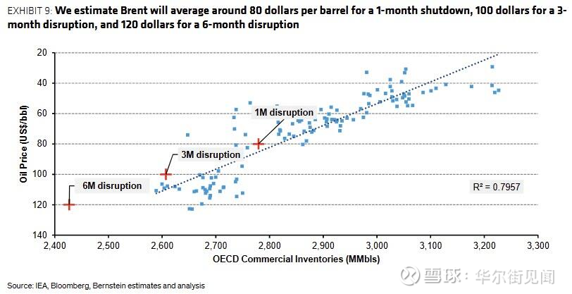 伯恩斯坦能源团队围绕封锁时长构建了三种情景模型:若封锁维持一个月,布伦特峰值约100美元/桶;若延续至三个月,峰值攀升至140美元;若长达六个月,峰值可能触及170美元/桶。伯恩斯坦将一个月封锁视为基准情景,但同时明确指出,三至六个月的封锁情景下,全球经济衰退将"不可避免"。