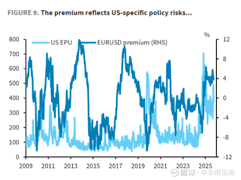 但自2025年以来,情况逆转。美国国内经济政策不确定性飙升,与美元溢价变成了正相关。市场开始要求为持有美元所承担的“美国本土政策风险”获得补偿。