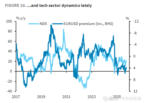 是什么在支撑这个溢价?巴克莱认为,这越来越与美国特有的风险因素高度相关,一是美国国内的经济政策不确定性,二则是美国科技板块的估值波动。