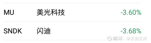 美股存储芯片板块周三遭遇重挫。闪迪一度跌6.5%,美光科技跌4%,西部数据跌超4%,希捷科技跌超5%。