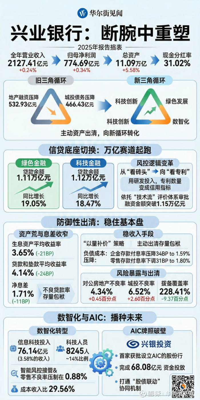 为平抑市场在转型阵痛期的预期波动,兴业银行祭出了31.02%的现金分红,而在防守底色之下,其11.09万亿的资产大盘并未停滞,而是在水面下进行着深度的底层腾挪。