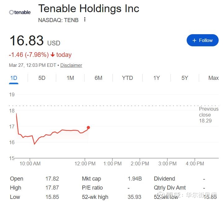 周五美股早盘,Tenable一度跌逾13%,Zscaler曾跌超9.5%,Palo Alto Networks曾跌逾8.2%,CrowdStrike曾跌超7.8%,后跌势缓和,Tenable跌约8%,后三者跌幅收窄到6%以内。