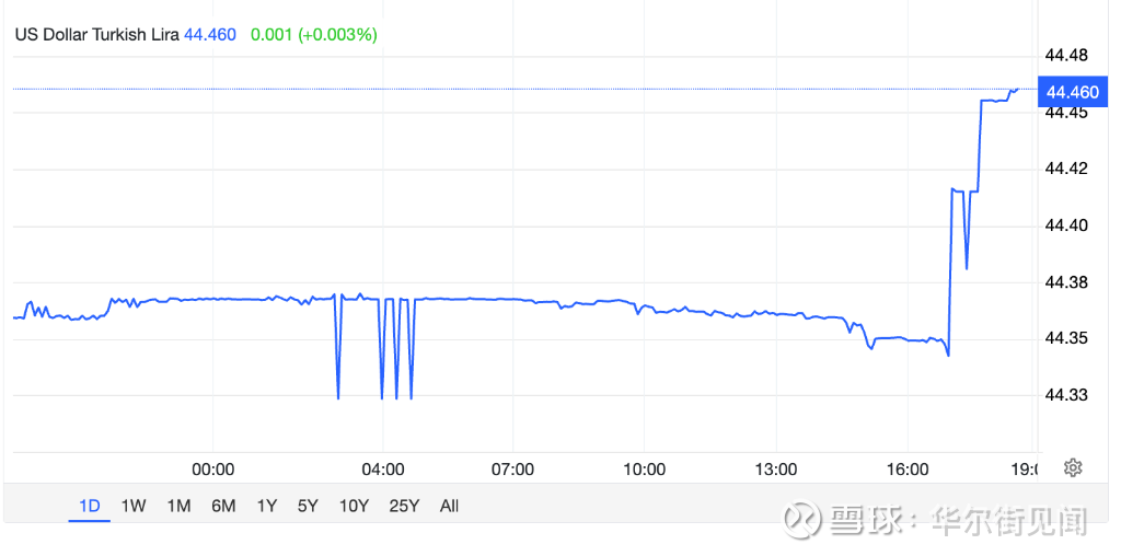 自冲突爆发以来的16个交易日内,里拉对美元汇率连续11次创历史新低,3月25日触及约44.35里拉兑1美元。