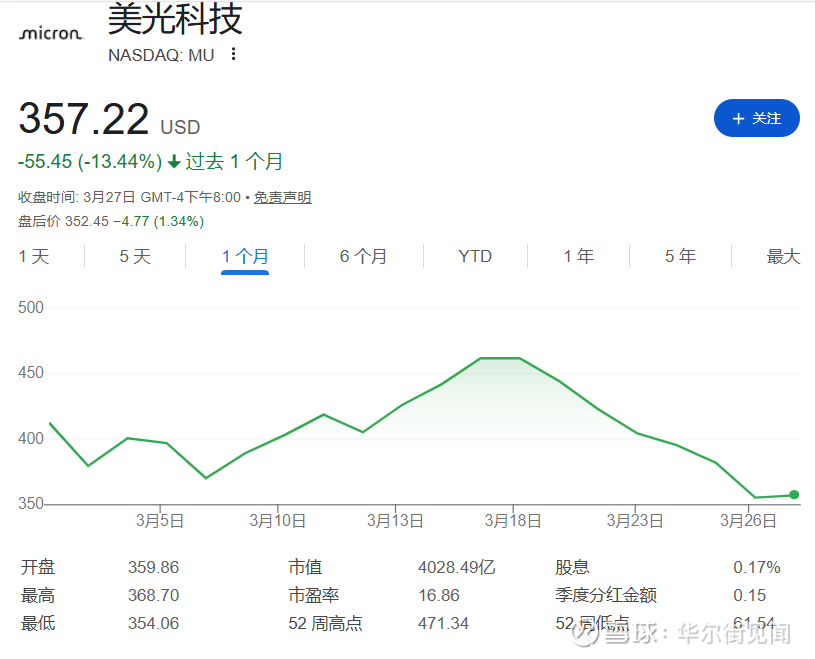 现货市场的寒气迅速传导至资本市场。美光科技股价自近期高点回撤超24%,西部数据也从777.60美元的高位下挫近21%。同时,上周美国内存芯片板块市值蒸发近1000亿美元。