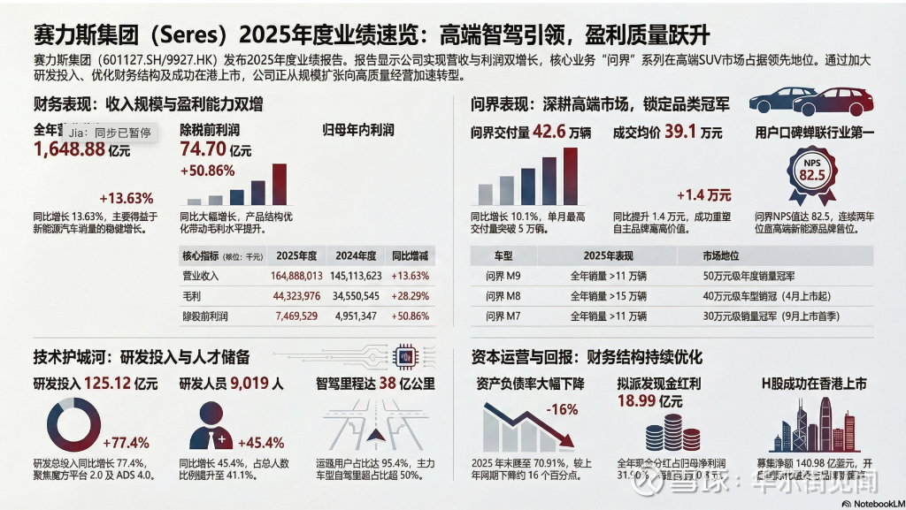 港股上市重塑资产结构,现金流大幅改善2025年11月5日,赛力斯H股在联交所主板上市,发行108,619,000股,发行价131.50港元。H股上市不仅拓宽了国际融资渠道,更改变了公司资产负债结构。