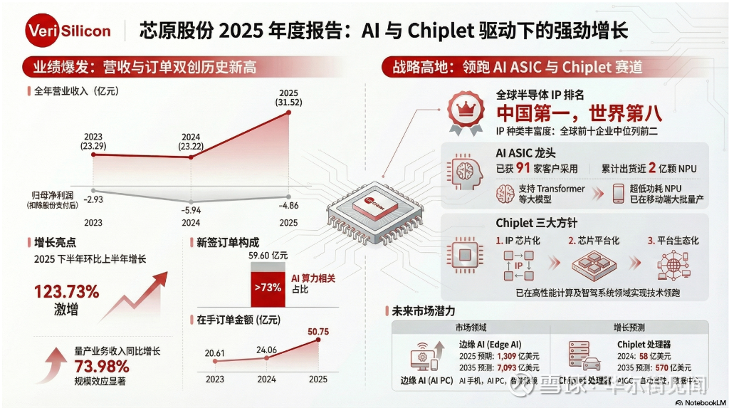 值得关注的是,公司新签订单呈现爆发式增长。2025年全年新签订单金额达59.60亿元,同比大增103.41%,数据处理领域订单占比超50%,且主要来自云侧AI ASIC及IP。截至年末,公司在手订单金额达50.75亿元,较三季度末增长54.45%,连续九个季度保持高位,量产业务订单超30亿元。