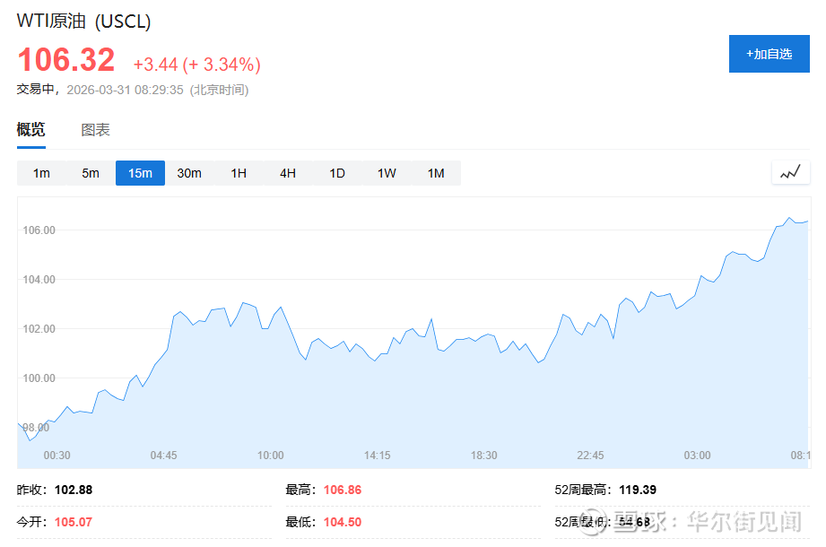 最新动态显示,科威特国家石油公司证实,其满载原油的“Al-Salmi”号油轮在阿联酋迪拜港遭伊朗袭击,船体受损起火,并可能引发原油泄漏。受此消息刺激,WTI原油期货价格一度大涨3.7%至每桶106.70美元,布伦特原油期货亦涨超3%,站上109美元/桶。