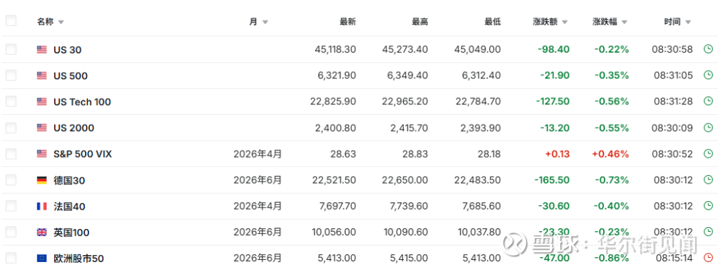 美股市场同样承压,标普500指数期货下跌0.3%,纳斯达克100指数目前较10月份的历史高点已下跌12%。