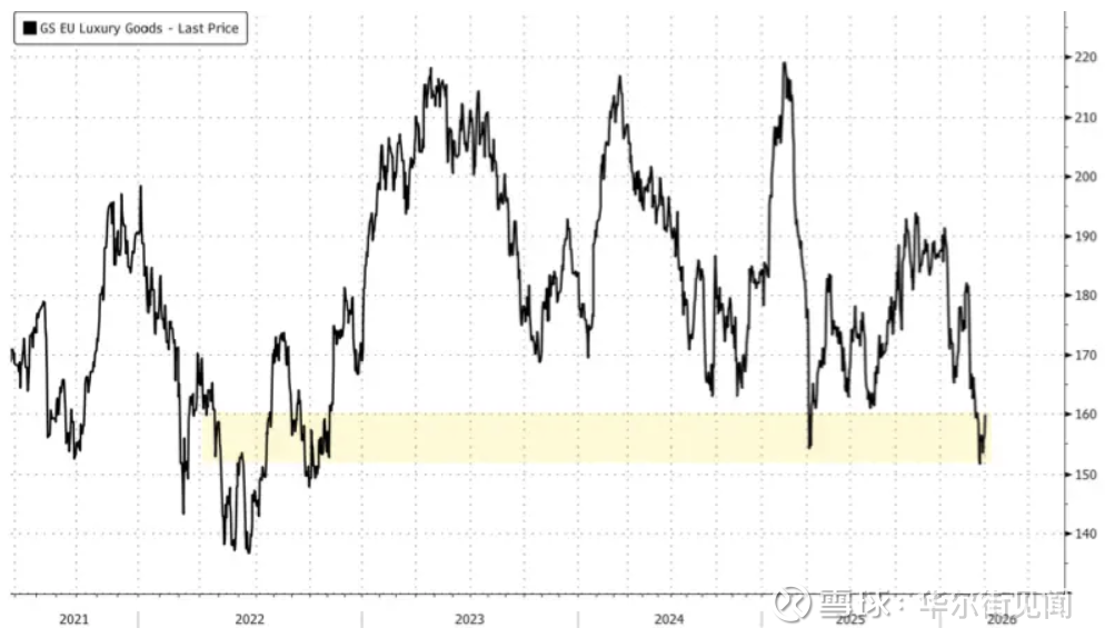 高盛欧洲奢侈品股票篮子(GSXELUXG Index)显示,该板块目前似乎已在2022年的交易区间附近获得支撑。