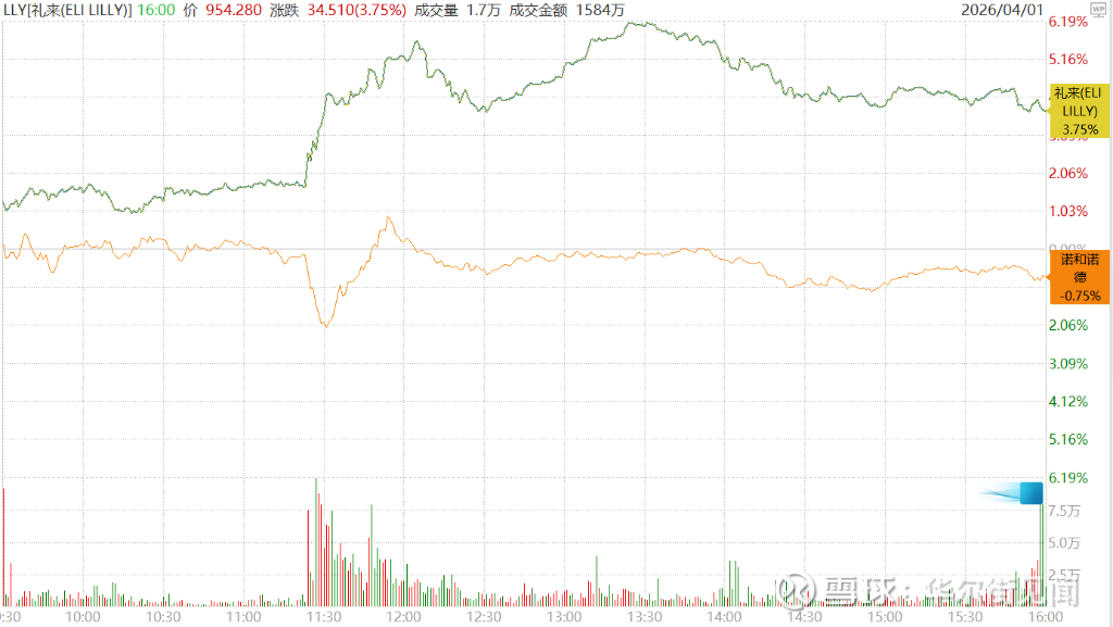 (周三利来收涨近4%,诺和诺德ADR微跌约1%)