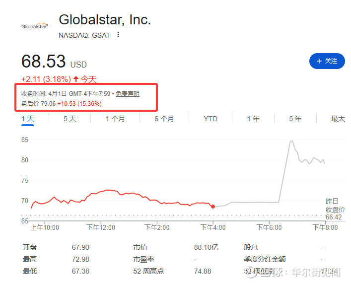 据知情人士向英国《金融时报》透露,亚马逊正与卫星电信运营商Globalstar洽谈收购事宜。截至4月1日周三,Globalstar市值约90亿美元,其股价过去一年累计涨幅约230%,市场早已在押注这家公司可能成为SpaceX的潜在竞争者或并购标的。消息后,Globalstar盘后涨超15%。