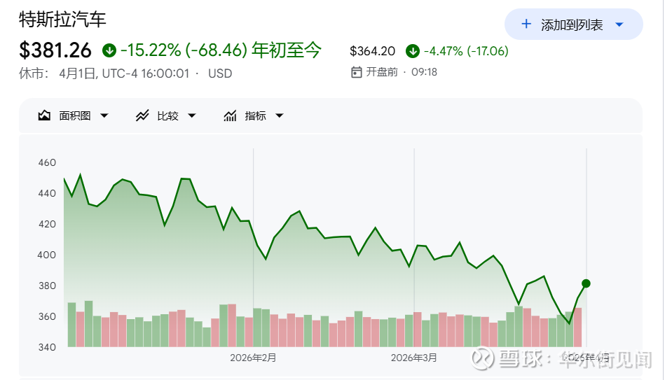 该公司周四公布,今年一季度全球交付量为358,023辆,低于彭博汇编分析师平均预期的372,160辆,为近年来表现最疲弱的季度之一。交付数据发布后,特斯拉美股盘前跌超4%,进一步拖累今年以来的累计跌幅。