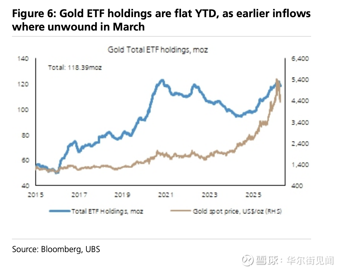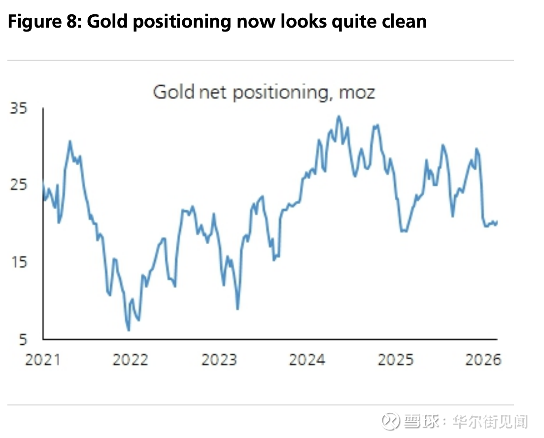 在这个框架下,报告给出的定价锚是:2026年金价年均5000美元、年底目标5600美元。它同时提到,投机仓位已经“更干净”,而长期参与者仍偏低配;如果回撤再出现,更接近一种“战略建仓窗口”,而不是趋势终结的信号。