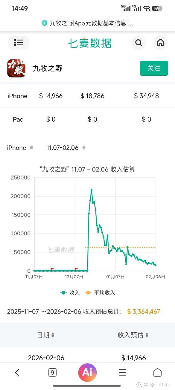 图3九牧之野收入预估图(数据来源:七麦数据)