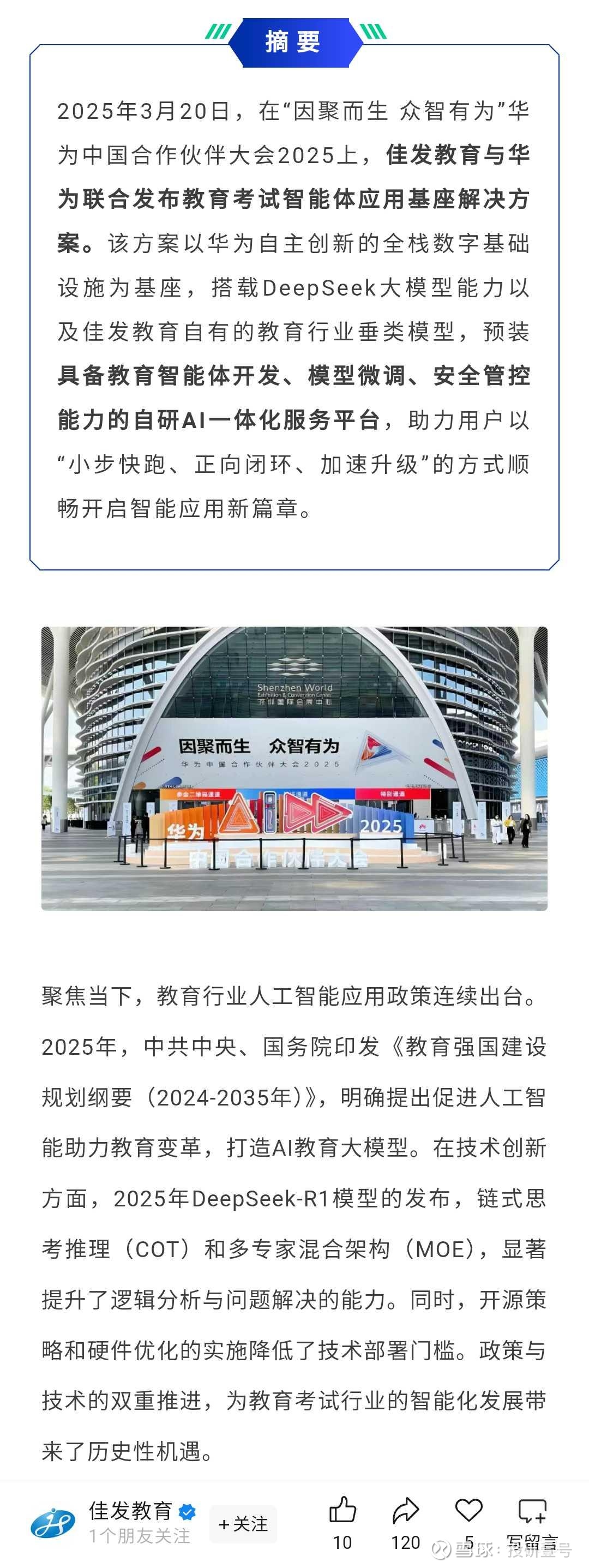 佳发教育:与华为共同打造Ai教育智能体,教育强国势在必行!