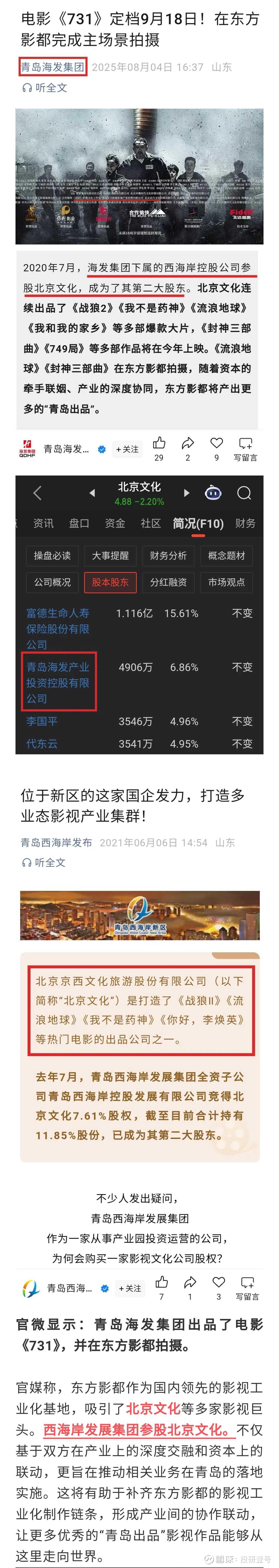 北京文化:电影 《731》最为纯正的投资参股出品方之一!