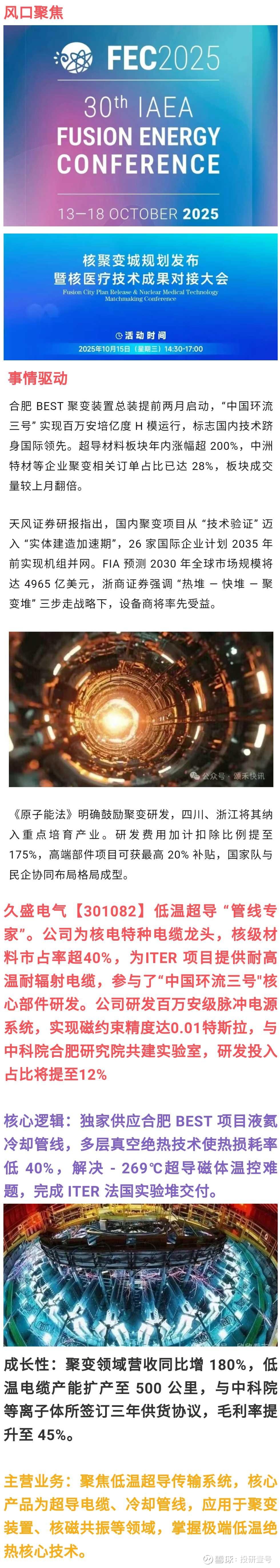 公司是国际热核聚变实验堆(ITER)计划的供应商之一。ITER是全球最大的国际科研合作项目之一,旨在验证可控核聚变发电的可行性。久盛电气的特种电缆产品成功应用于该项目的部分环节,这标志着其技术能力达到了国际顶尖水平,获得了国际项目的认可。