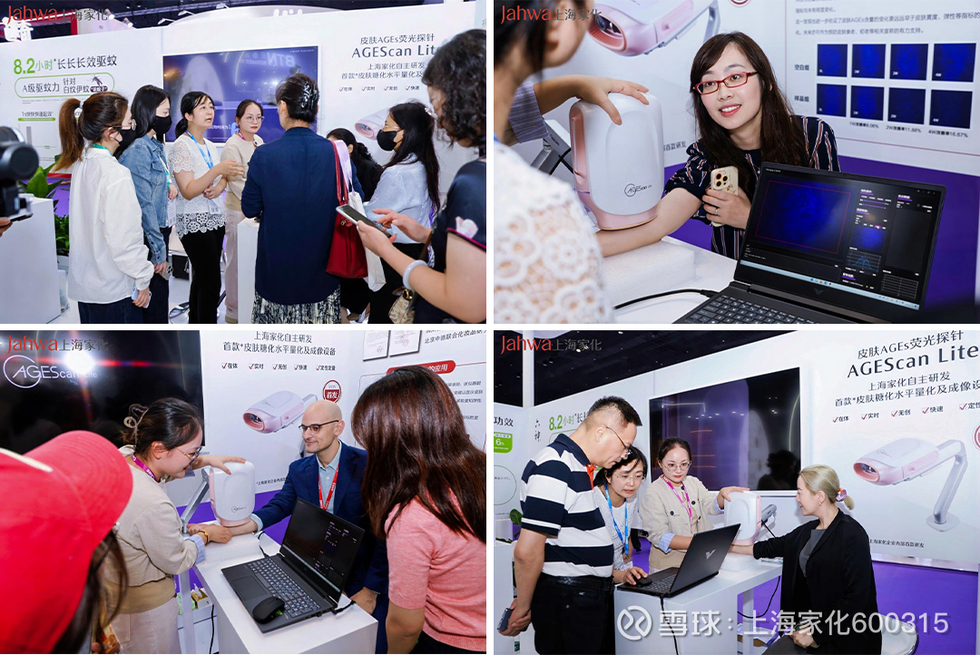 展会期间,上海家化研发中心正式推出首款“皮肤糖化水平量化及成像设备——皮肤AGEs荧光探针AGEScan Lite”。该设备实现了在体、实时、无创的皮肤糖化水平定量分析与成像,突破行业技术难题,填补了化妆品领域在体无创糖化定量检测的空白。