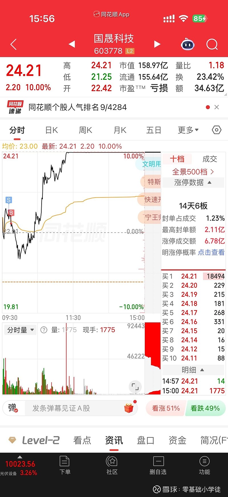 1、国晟科技,老伙伴了,近4天一直持有,今天涨停,因为马斯克要采购太空光伏,量化捕捉,直接就拉上去了,早上开盘依旧冲高回落,2个点的时候全部出了,1个点的时候又接回了半仓,刚接回来又一路向下,直接砸破五日线支撑位了,以为昨天的剧本上演了,就没想太多了,寻找下一支