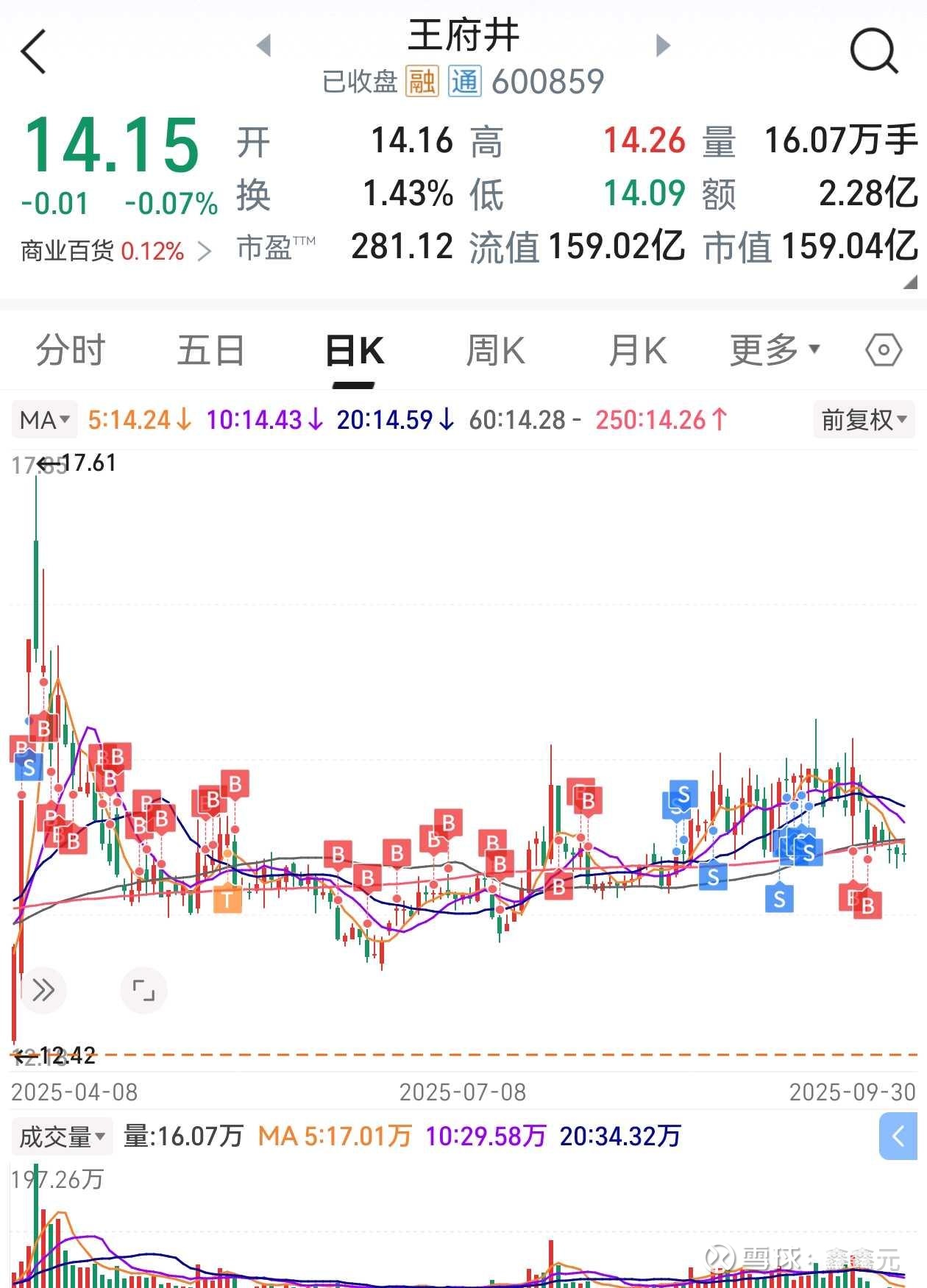 滕总,我想问问王府井这个跟了些日子,目前您盈利了吗? 我跟了四个月有余,从盈利十万到六七万起起伏伏,前几次15没有减仓,到账回撤。这个股,我感觉不会大亏,只要跟好节奏,但是目前也没有大涨的可能,春节有望突破一次17就是小极限,票值得长期拿一拿,毕竟科技不可能一直炒炒炒,风水总要轮流转,小王就需要奔着把成本越做越低,扛得住每次波动,做t也意义不大,2%就是过年,不值当费心费力,精力完全可以看看别的。查看图片
