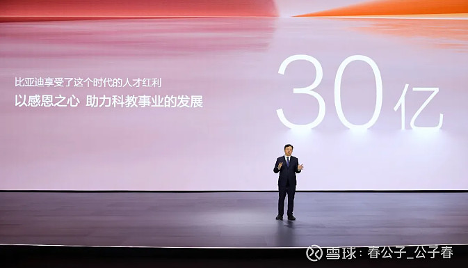 比亚迪一直践行的是技术为王,但技术的背后是人。12万研发人员,7万多件专利,不是凭空来的。研发投入634亿,砸的是钱,养的是人。30亿教育基金,砸的也是钱,养的也是人。