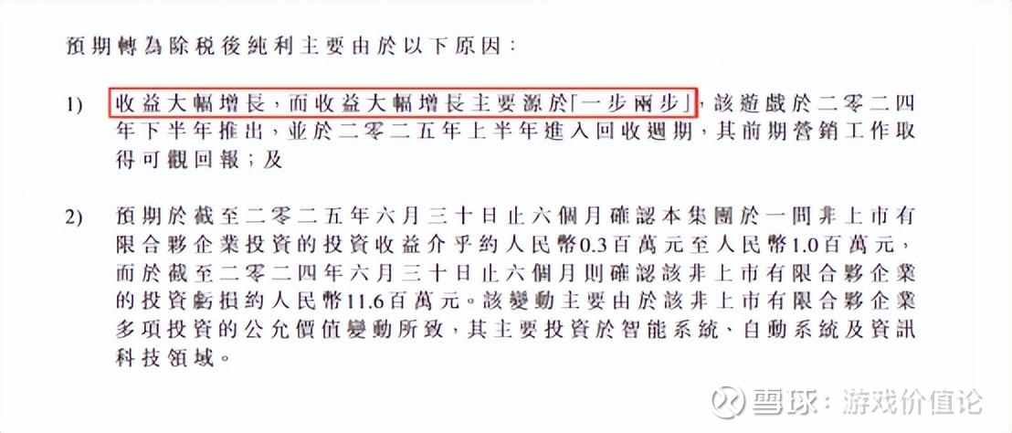 同样根据预告显示,公司扭亏为盈的主要原因是两点:一是主要源于游戏《一步两步》的收益大幅增长;二是关于一间非上市有限合伙企业投资的投资收益介乎约30万元-100万元。