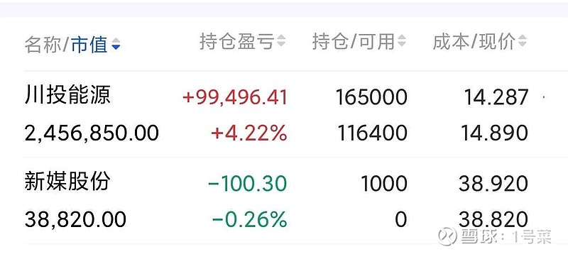 川投的仓位又回来了,还多了1千股新媒,还有点早餐钱下星期转出改善伙食