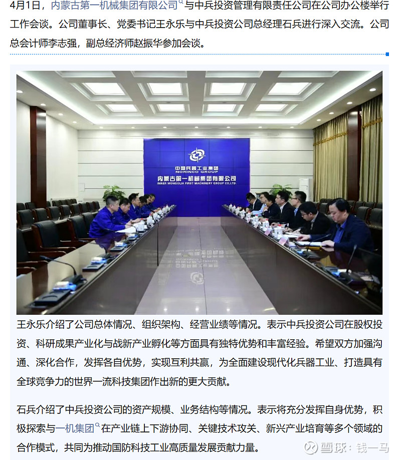 一机集团与中兵投资公司举行工作会谈