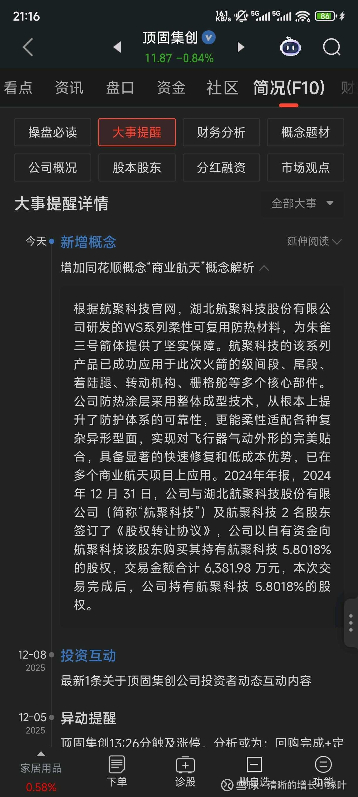 顶固集创在2024年年报第182页公告已入股航聚科技,先前的投入终有回报!很大的机会会补涨!