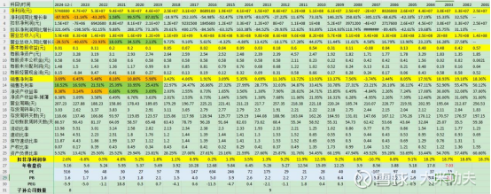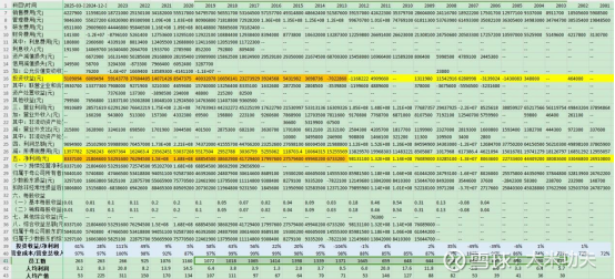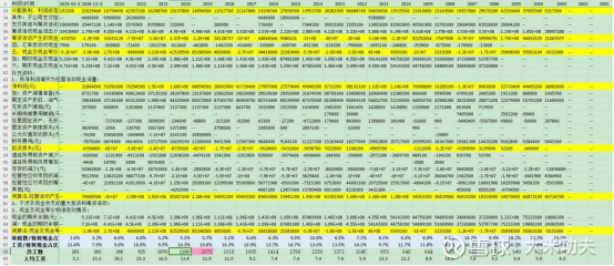 这个表由同花顺F10直接下载稍加整理即可,也大概10分钟就能基本完成,就是员工人数除当年同花顺F10可查外,其余必须到巨潮资讯网下载年报并查阅每年2分钟,这表可灵活使用,点击第1行就知道上市公司2013年至2025年3月营业总收入133.9亿元,点击第27行就知道上市公司同期净利润7.3亿元,点击第26行就知道上市公司同期所得税费用1.3亿元,点击任何分布行可知累计/平均数,例如:2013年以来营业成本/营业总收入平均占比96.6%,近11年平均投资收益/净利润28%,总之可以用于上市公司横向比较。