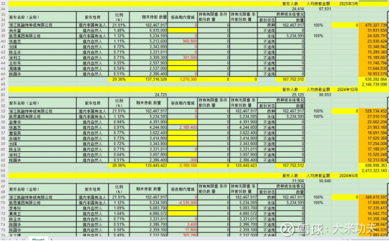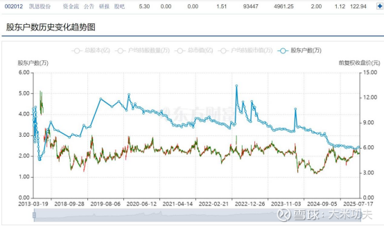 1)股本数据,转配,增发,回购,公积金,净资产,等按季数据,通过简单运算可以知道控股大股东2013年后每股净资产增值,为11.04元到15.79元,增值率1.4倍,也可以说这家公司从2013年起净资产11.2亿元经过11年运作、0次增发0亿元后,现在公司净资产为15.3亿元,图中能见原始大股东每股净资产增值自2018/6/30年至2025/3/31为12.14元到15.79元变化过程