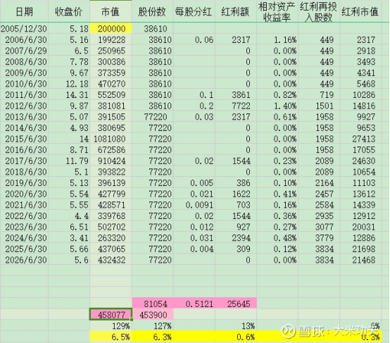 假如你该股上市1年后2005/12/31按收盘价5.18元在二级市场用20万元买入该股持有至今日(分红再投入)(K线复权后不正确,只有列表计算最正确)20万元变成45.8万元,该股年化收益率也有6.5%,对于目前市场投资标的尚能认可,但是对于WTO后20年房地产通胀,长期持有没有意义。