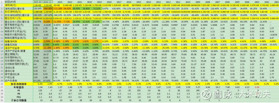 这个表不需要过多解释由同花顺直接下载填入每年收盘价稍加整理即可,其中子公司数量除当年能在同花顺F10见到,其余必须到巨潮资讯网下载年报并每年花2分钟时间查阅并计数,一般15分钟就能完成。其近3年平均净资产收益率-3.5%,其远3年平均净资产收益率4%,近3年平均净利润同比增长率-230%,远3年平均净利润同比增长率7.4%,近3年平均营业总收入同比增长率-9.5%,远3年