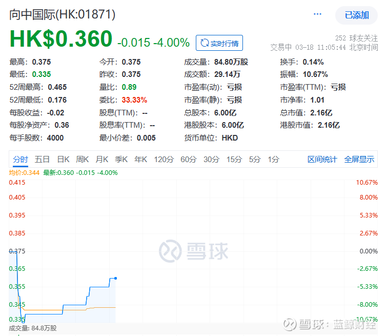 业绩预告发布后,向中国际连续三个交易日股价下跌,截至3月19日,其股价一度下跌4%至0.36港元/股。