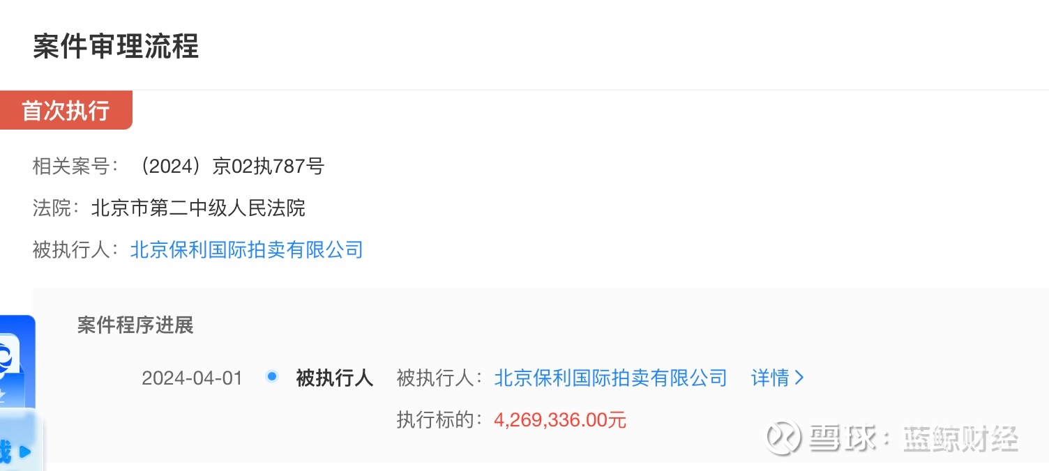 4月9日,蓝鲸新闻获悉,北京保利国际拍卖有限公司(下称“保利拍卖”)被列为被执行人,执行标的为426.93万元。目前,具体案件经过尚未披露在公开渠道。