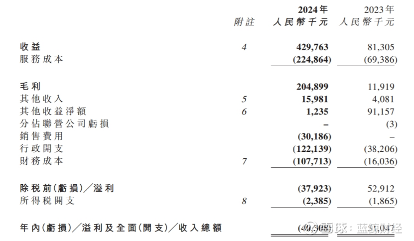 到了11月底,博骏教育正式发布年报。报告显示,截至2024年8月31日止的财年,博骏教育实现营收4.30亿元,同比大增428.6%;实现毛利2.05亿元,同比大增1619.1%。从增幅来看,其主营业务的增长非常迅猛。但与此同时净利润却与前二者形成巨大的倒挂幅度,其实现年内亏损4030.8万元,同比大跌179.0%;实现公司拥有人应占年内亏损3956.6万元,同比大跌177.5%。
