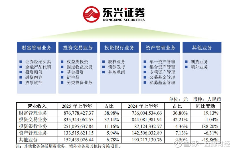 业务收入结构(图片来源:东兴证券2025年半年报)
