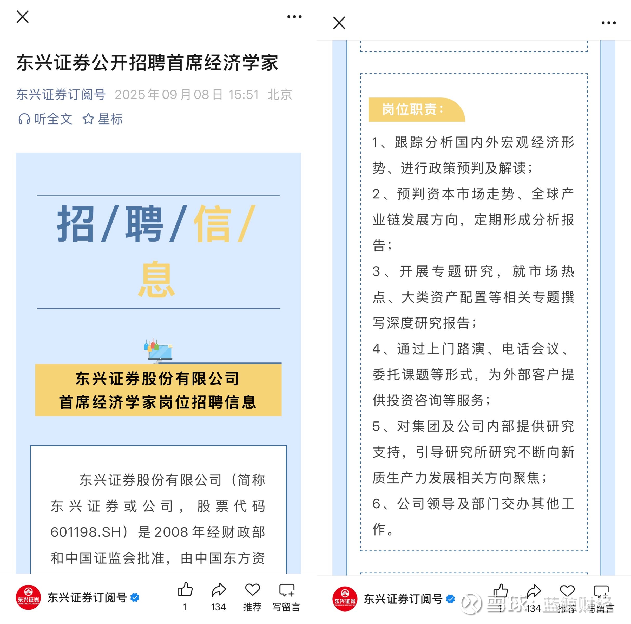 自2019年原首席经济学家张岸元离职后,东兴证券首席经济学家一职空缺至今已长达6年。此次招聘也被业内解读为东兴证券试图强化研究服务能力,重振低迷研究业务的一大动作。