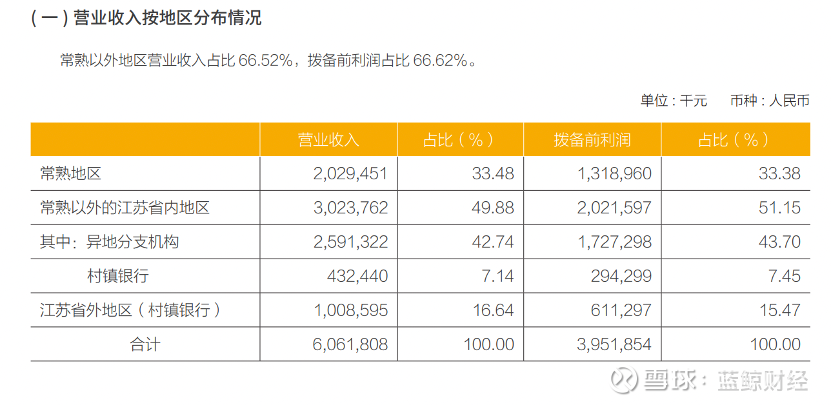 从信贷业务上看,半年报显示,在常熟银行的总贷款中,常熟以外地区贷款占比为 68.15%,较年初提高 0.15 个百分点。常熟以外地区营业收入占比则为 66.52%,拨备前利润占比 66.62%。