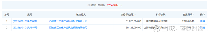 据天眼查APP显示,该公司于2025年9月9日及10日有两起被执行案件,执行法院为上海市黄浦区人民法院,被执行总金额约为9194.648万元。