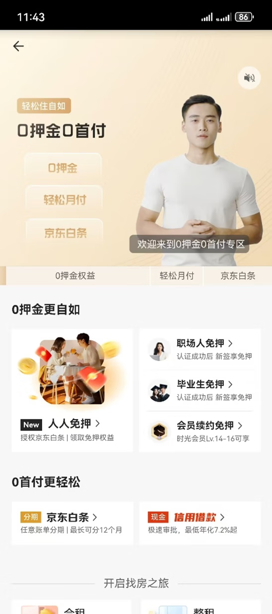 一方面是特定消费市场的针对性政策。租房免押金是白条场景探索的一大实践。传统租房需要押一付三,加上服务费或者中介费,通常需要一次性交够4-5个月的房租,这对于很多刚毕业步入职场的群体来说是很大的资金压力,可能不得不选择降级消费。在这方面,白条推出了“信用免押金”的服务。